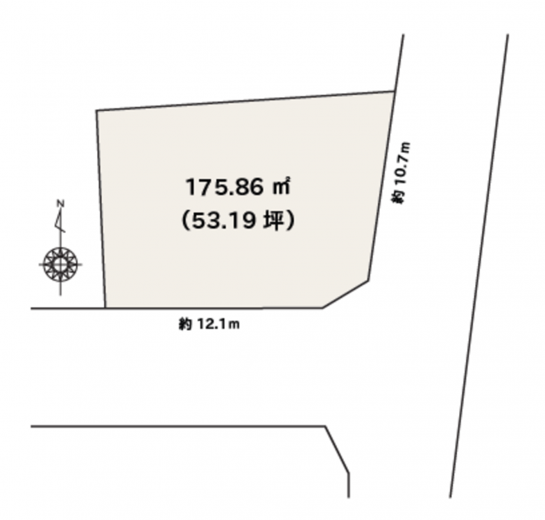ゆとりの53 坪、日当たり良好な南東角地