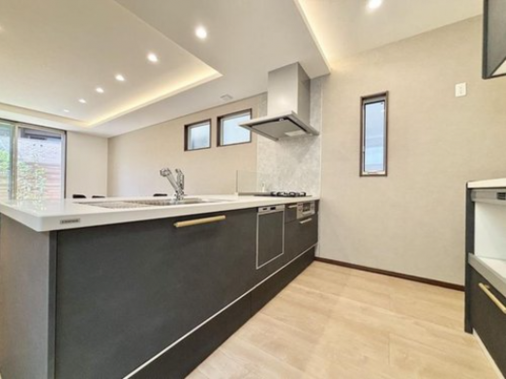 - システムキッチン、浴室乾燥機、モニタ付インターホン、洗浄便座、ウォークインクローゼット、追い焚き、駐車場2台分、床下収納、トイレ2箇所、浄水器