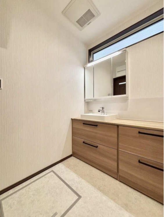 清潔感溢れるモダンな洗面室
