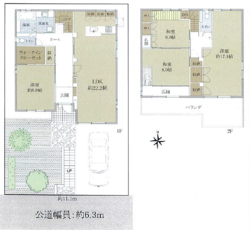 - 南側 公道6.3m 間口約11.1m