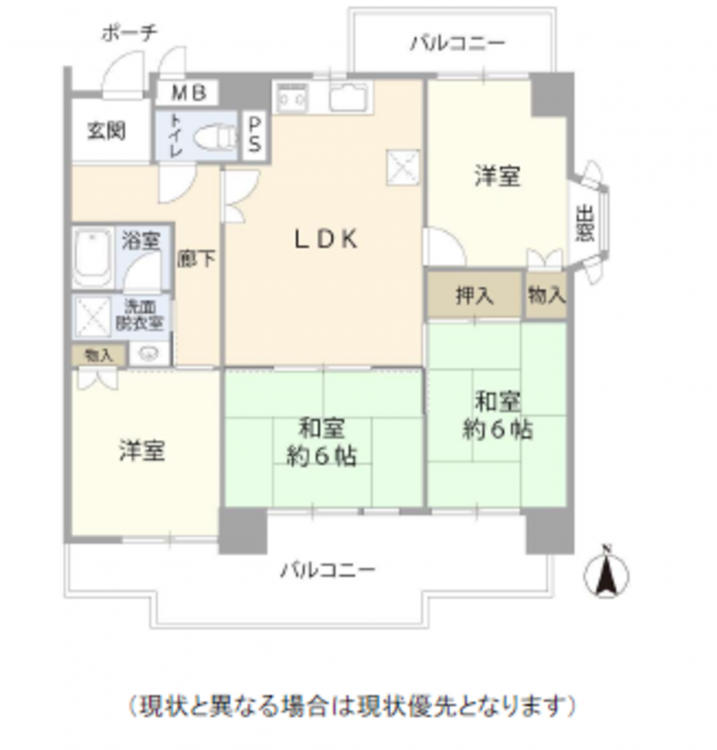 ・全クロス貼(天井、壁)・フローリング張(洋室2室)